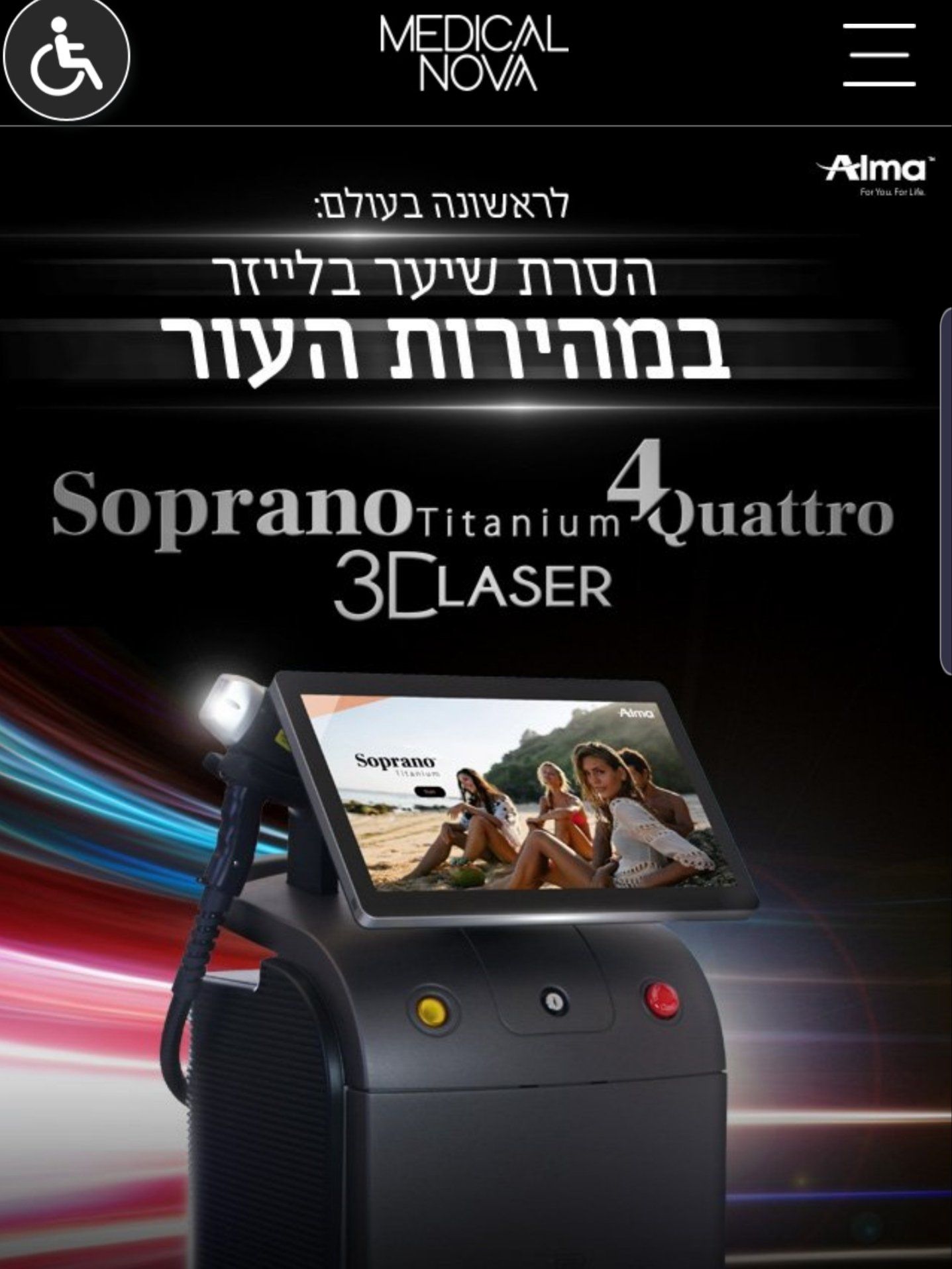 בטכנולוגיה של ALMA NOVA MEDICLE להסרת שיער בלייזר, הצרת הקפים הטכנולוגית RF וטיפולי מיקרו פלזמה